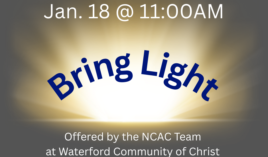 Members of the Naming, Claiming and Acting the Change Team (NCAC) are planning a hybrid worship experience focused on enduring principles for Sunday, January 18 at 11:00am. Waterford Community of Christ will be hosting the in-person worship location at 1990 Crescent Lake Road, Waterford, Michigan 48327. Congregations and individuals can also join online via Zoom (us02web.zoom.us/j/89559621274).