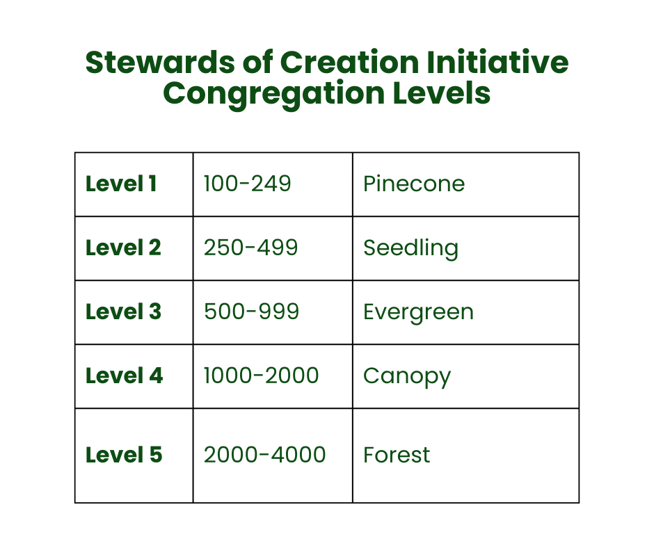 SoCI is designed to allow congregations to work at their own pace on the activities that they select with support from the Earth Stewardship Team along the way. Congregations work their way up from a seedling to canopy as they achieve new levels through activities. For questions about the initiative, contact Earth Stewardship Team Lead, Dan Nowiski at dan@cofchristmi.org.